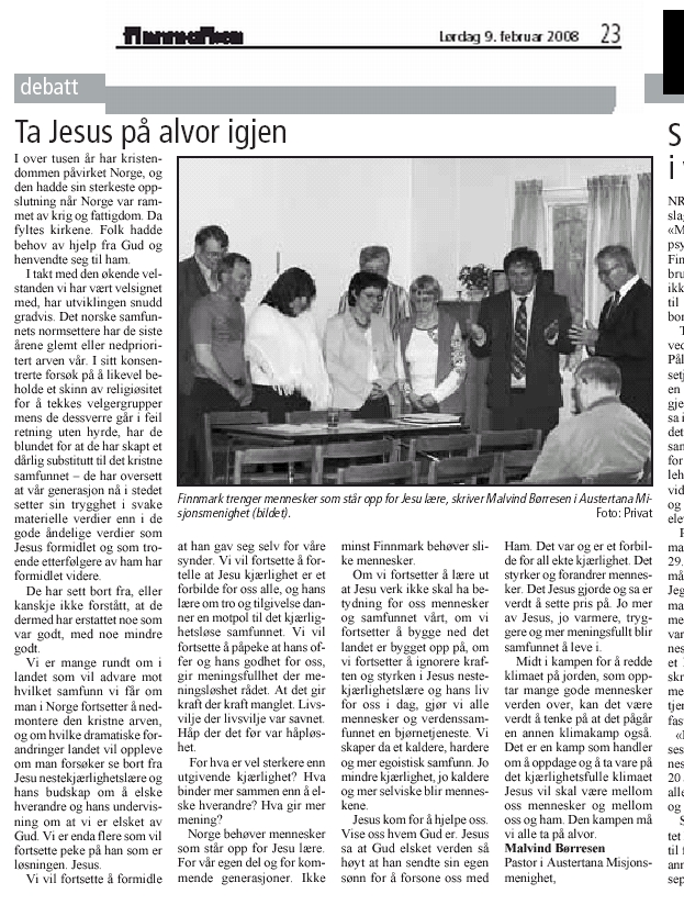 Denne artikkelen fra februar 2008 tar for seg at vi i Finnmark må ta Jesus på alvor igjen og ikke glemme vår kristne arv.